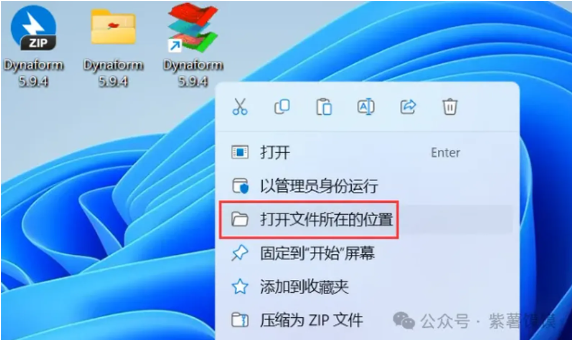 19、回到桌面,右键桌面上的【Dynaform 5.9.4软件图标】,点击【打开文件所在的位置】