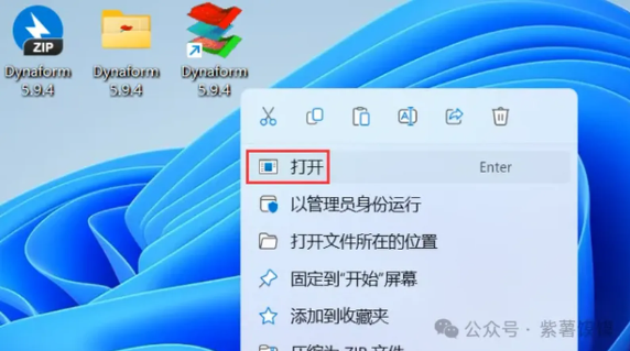 29、回到桌面,右键桌面上的【Dynaform 5.9.4软件图标】,点击【打开】