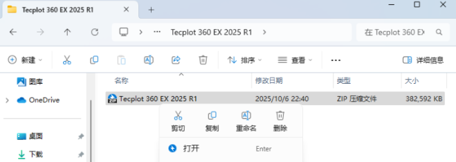1.下载完成后,鼠标右击【Tecplot 360 EX 2025 R1】压缩包,选择【解压至此处】