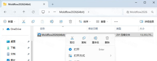 1.下载完成后,鼠标右击【Autodesk Moldflow 2026】压缩包,选择【解压至此处】