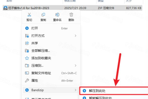 1.下载完成后,鼠标右击【坯子插件库 v1.6.0 for SketchUp 2018-2023】压缩包,选择【解压至此处】