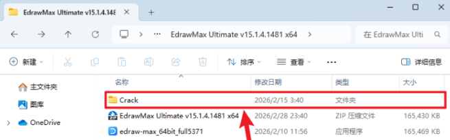 10.打开安装包解压后的【EdrawMax 15.1.4.1481】文件夹,双击打开【Crack】文件夹