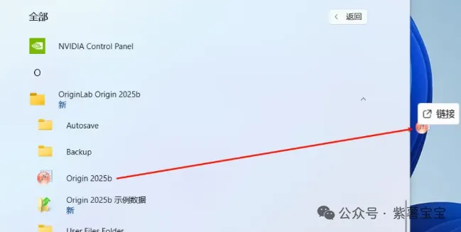 23.创建桌面快捷方式:①点击桌面任务栏中的【开始图标】>点击【所有应用】>双击展开【OriginLab Origin2025b】文件夹②将【Origin 2025b】图标拖到电脑桌面