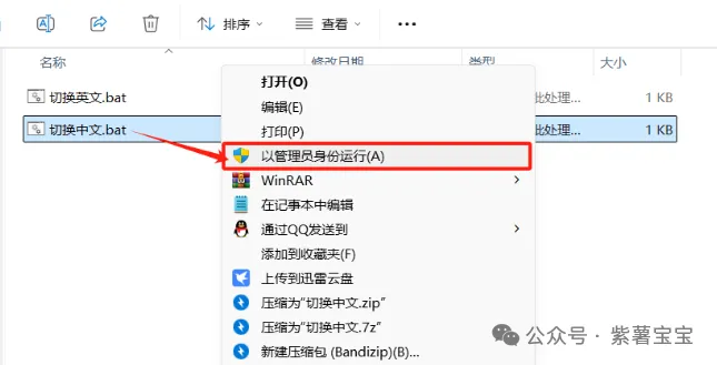 28.鼠标右击需要安装的语言类型(中文选中切换为中文,英文选中切换为英文)选择【以管理员身份运行】(运行完成后自动关闭)