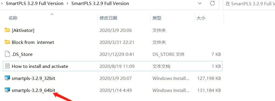 我的电脑是64位的,选择对应电脑位数的运行程序(现在应该很少32位的老古董了),双击“smartpls-3.2.9_64bit”运行