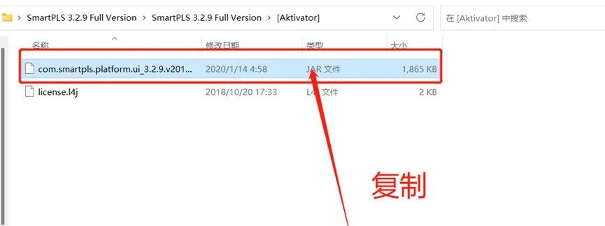 错误再次出现,现在打开’Aktivator’文件夹,复制粘贴”com.smartpls.platform.ui_3.2.9.v20191025-1800″