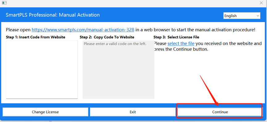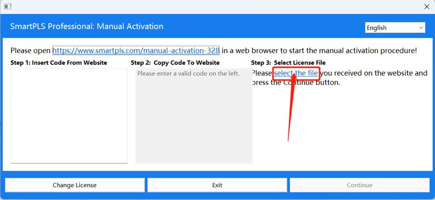 Select Step 3 ‘Select the file’ and look for the file “license.l4j” in the ‘aktivator’ folder and select Continue