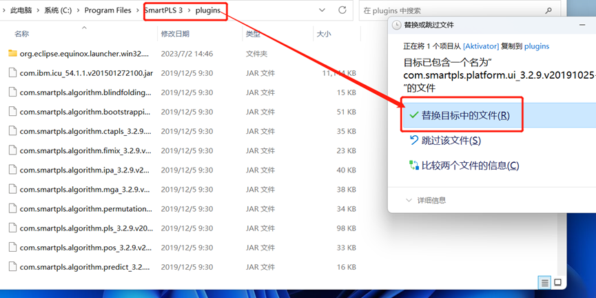 ‘C: \ Program Files \ SmartPLS 3 \ plugins’ and replace the original one.