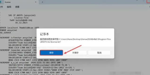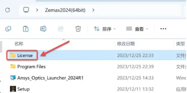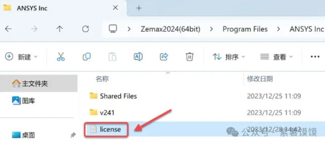 21.选择安装包中“\Zemax2024(64bit)\Program Files\ANSYS Inc”下的【license】,点击【打开】。