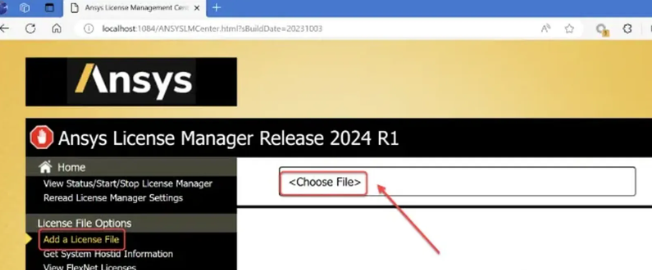 20.回到步骤13所在网页界面,点击【Add a license File】,点击【Choose File】。