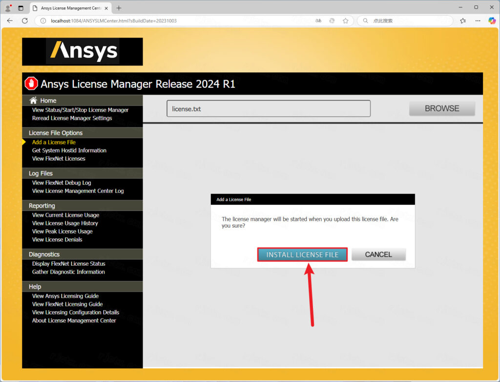 22.点击【INSTALL LICENSE FILE】。