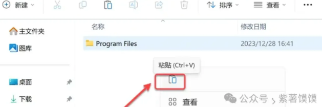38.打开修改后的磁盘位置(如:步骤7修改的磁盘为D,则打开D盘),鼠标右击空白处选择【粘贴】。