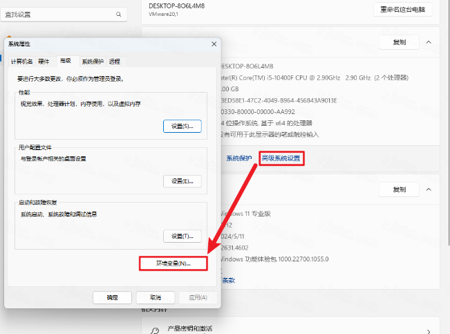 41.点击【高级】,点击【环境变量】。