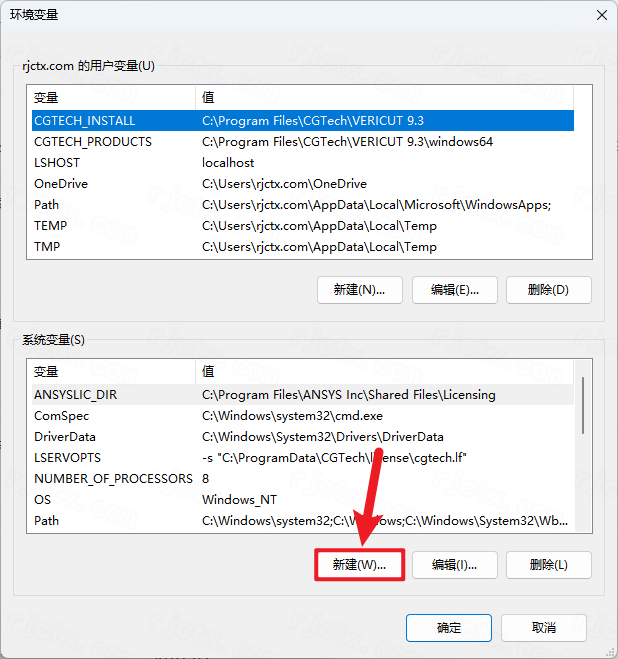 42.①在系统变量下方点击【新建】②输入变量名【ANSYSLMD_LICENSE_FILE】和变量值【1055@localhost】③点击【确定】④点击【确定】。