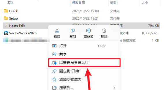 2.打开解压后的文件夹,鼠标右击【Hosts…】选择【以管理员身份运行】