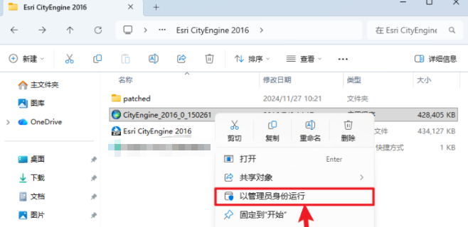 2.鼠标右击【CityEngine_2016_0_150261】安装程序,点击【以管理员身份运行】