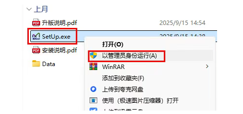 2、打开解压后的文件夹、鼠标右键管理员方式运行【SETUP】安装文件;