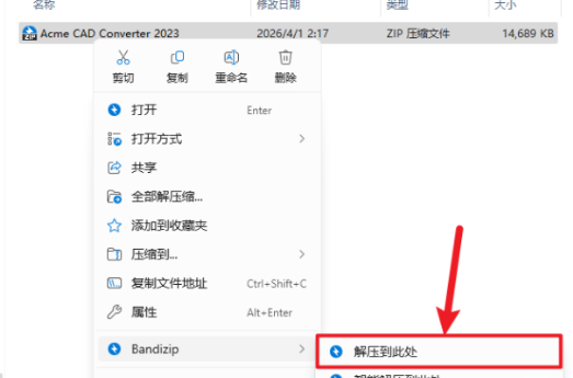 1.下载完成后,鼠标右击【Acme CAD Converter 2023】压缩包,选择【解压至此处】