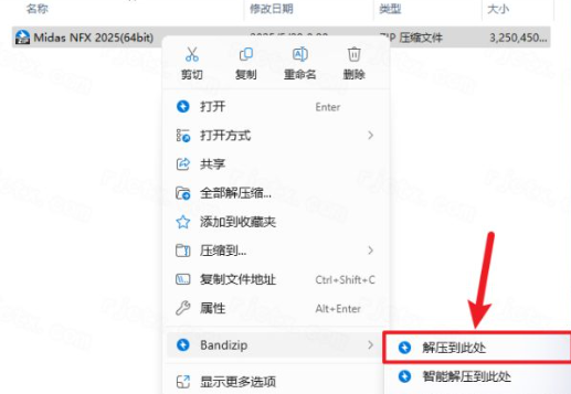 1.下载完成后,鼠标右击【Midas NFX 2025 R1】压缩包,选择【解压至此处】
