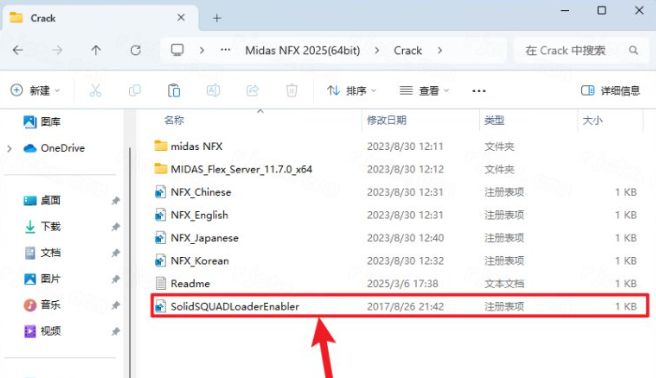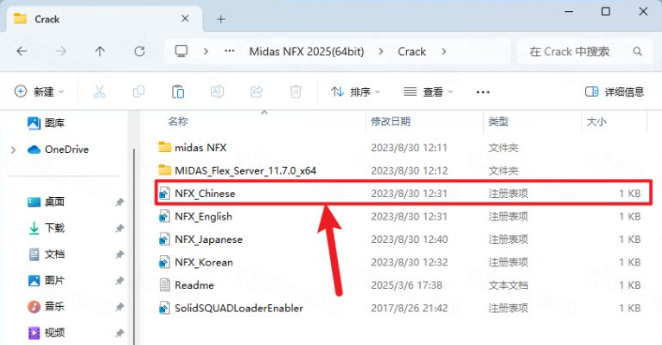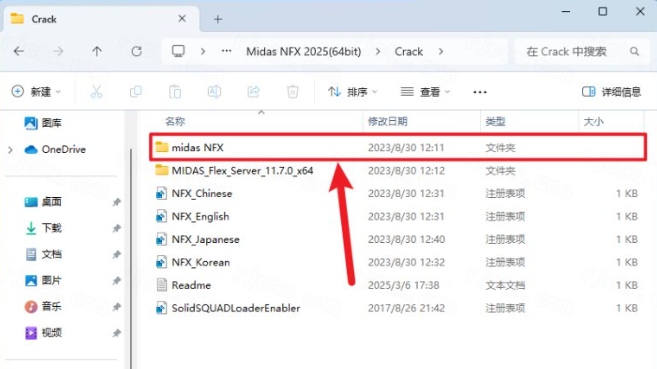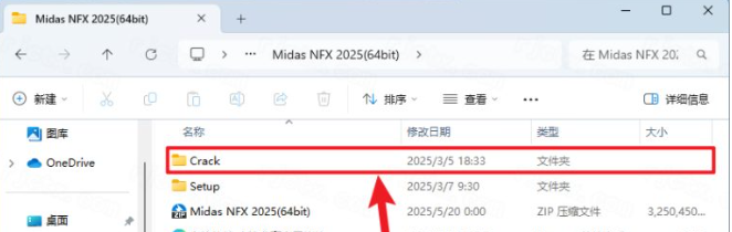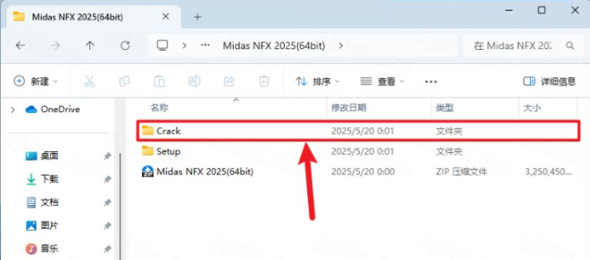 20.打开安装包解压后的【Midas NFX 2025(64bit)】文件夹,双击打开【Crack】文件夹