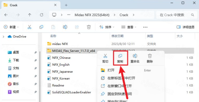 3.鼠标右击【MIDAS_Flex_Server_11.7.0_x64】选择【复制】