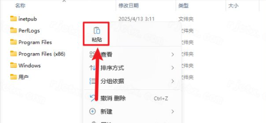 4.打开电脑C盘,鼠标右击空白处选择【粘贴】
