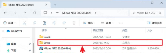 8.打开安装包解压后的【Midas NFX 2025(64bit)】文件夹,双击打开【Setup】文件夹