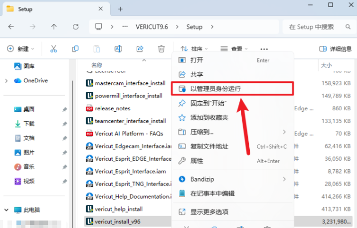 3.鼠标右击【vericut_install_v96.exe】选择【以管理员身份运行】