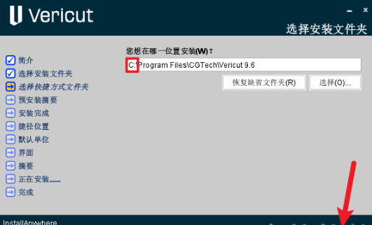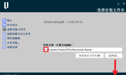 8.修改路径地址中的第一个字符C可更改安装位置(如:把C改为D软件将安装到D盘),点击【下一步】