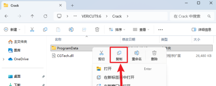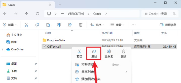 32.在打开的Crack】文件夹中,鼠标右击【CGTech.dll】选择【复制】
