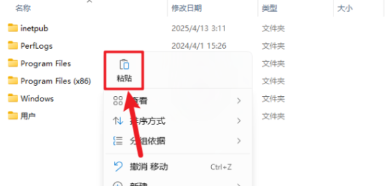 31.打开电脑C盘,鼠标右击空白处选择【粘贴】