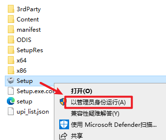 2.打开刚刚解压的文件夹,双击打开“Setup”文件夹,选中 “Setup”安装程序,右键选择“以管理员身份运行”
