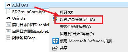 7.返回安装文件夹,依次打开“Crack—AdskUAT_1.3.4.0”文件夹,选中“AdskUAT”文件,右键选择“以管理员身份运行”
