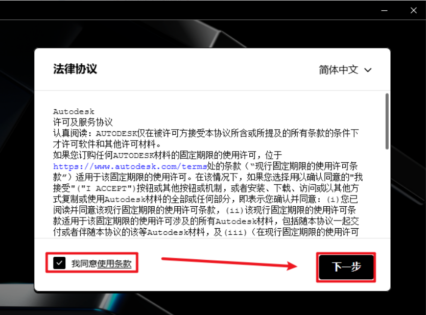 3.勾选“我同意…”,点击“下一步”