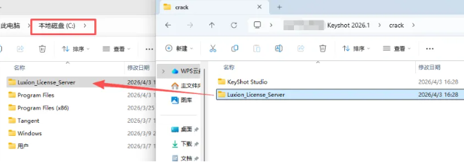 9、回到第一步解压的文件夹,打开【crack】文件,把【Luxion_License_Server】文件,复制到C盘根目录下,粘贴