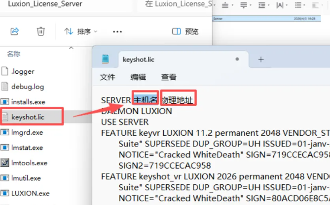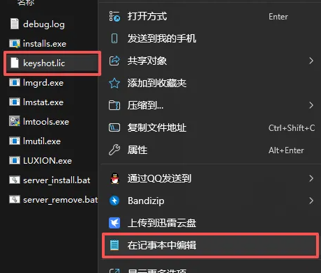 10、然后打开刚粘贴的文件,找到【keyshot.lic】,点击鼠标右键,选择【在记事本中编辑】