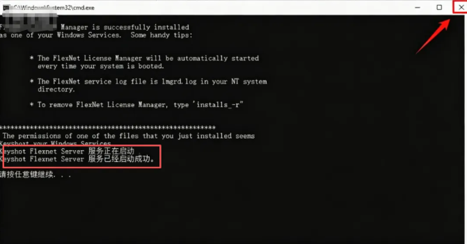 15、当弹窗显示“服务已经启动成功”,把弹窗关闭