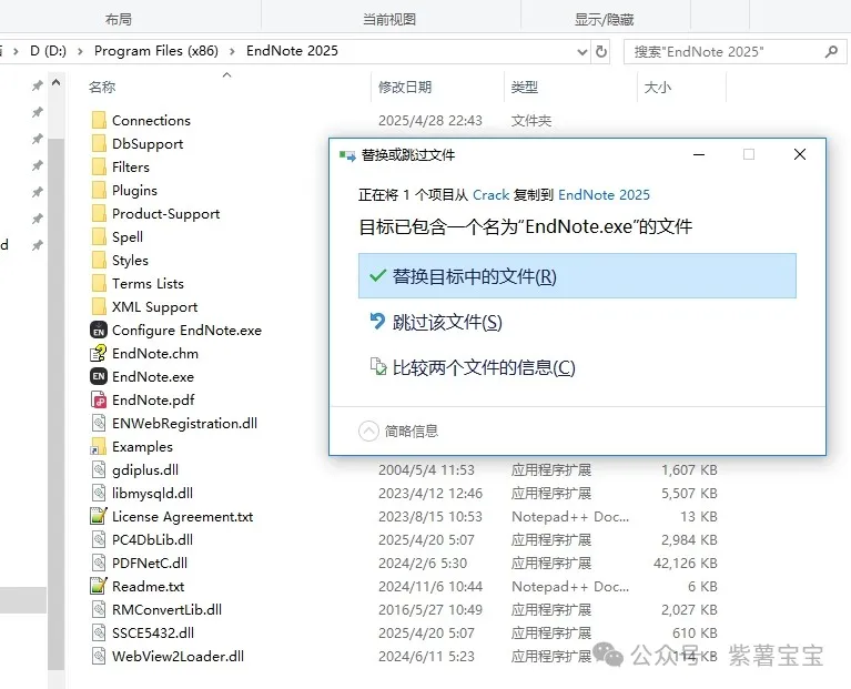 13.返回解压文件夹,打开【Crack”】,复制【EndNoteCHS.exe】,