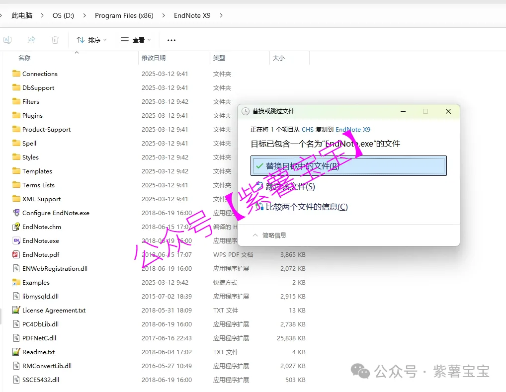16、打开路径:D:\Program Files (x86)\ EndNote X9,根据个人安装路径来,再右键文件夹的空白处,点击【粘贴按钮】