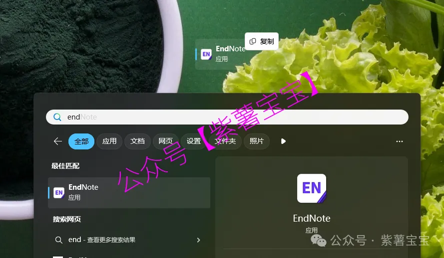 18、回到桌面,点击任务栏的【开始菜单】,在【所有应用】中找到【EndNote软件图标】,将软件图标拖到桌面上,完成软件桌面快捷方式的创建