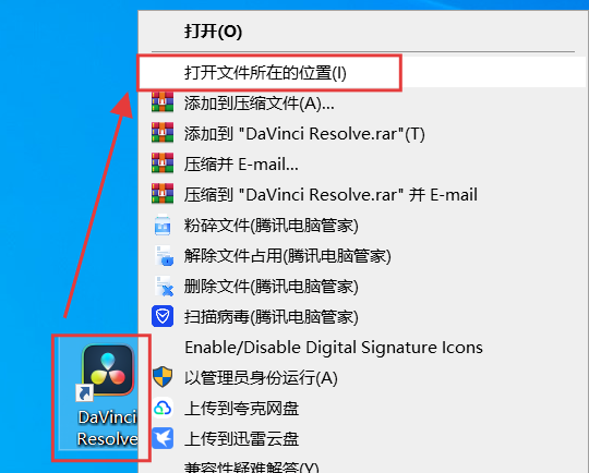 13.回到桌面,找到【达芬奇图标】,右键【打开文件所在的位置】