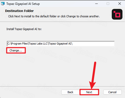 6.修改路径地址中的第一个字符C可更改安装位置(如:把C改为D软件将安装到D盘),点击【Next】