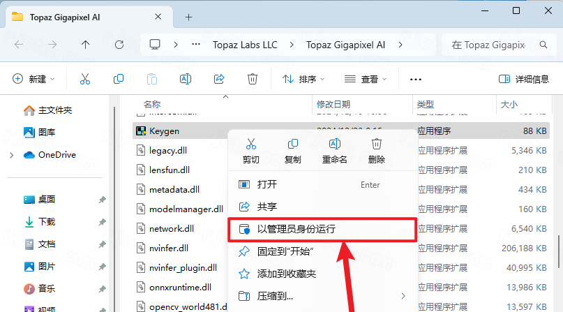 16.鼠标右击粘贴后的【keygen】选择【以管理员身份运行】
