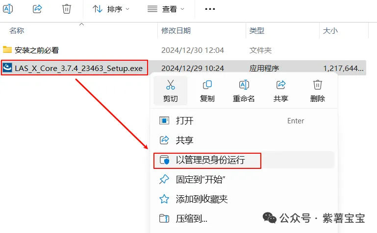 2.选中【LAS X Core_3.7.4_23463_Setup.exe】右键以管理员身份运行