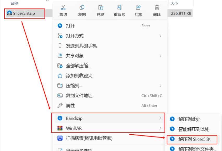 1.选中下载好的安装包,右键解压到“Slicer5.8”文件夹