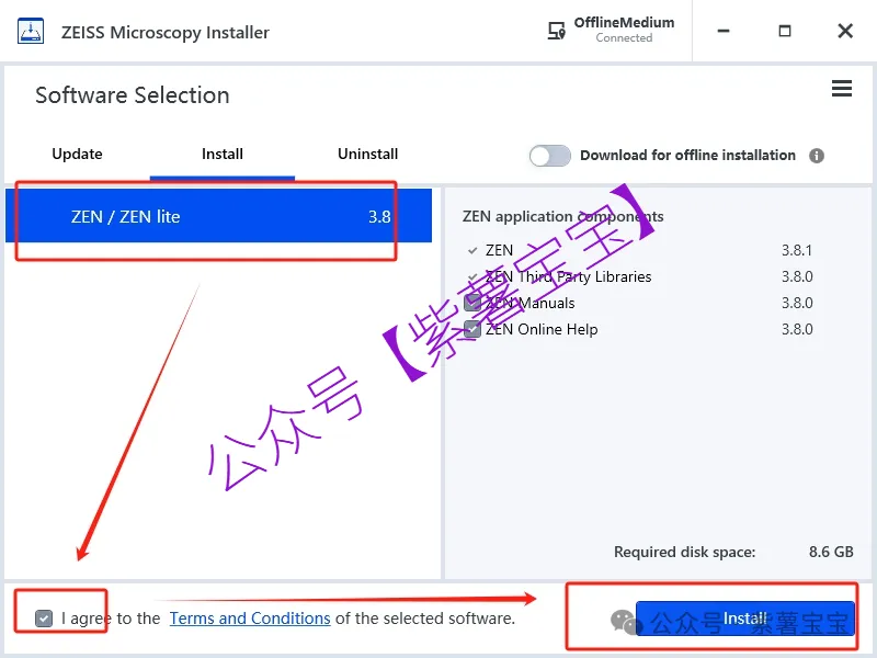 4.点击【ZEN/ZEN lite】,勾选协议,点击【Install】