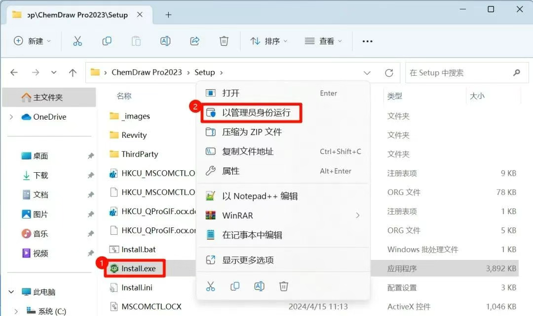 3.选中“Install.exe”鼠标右键选择以管理员身份运行