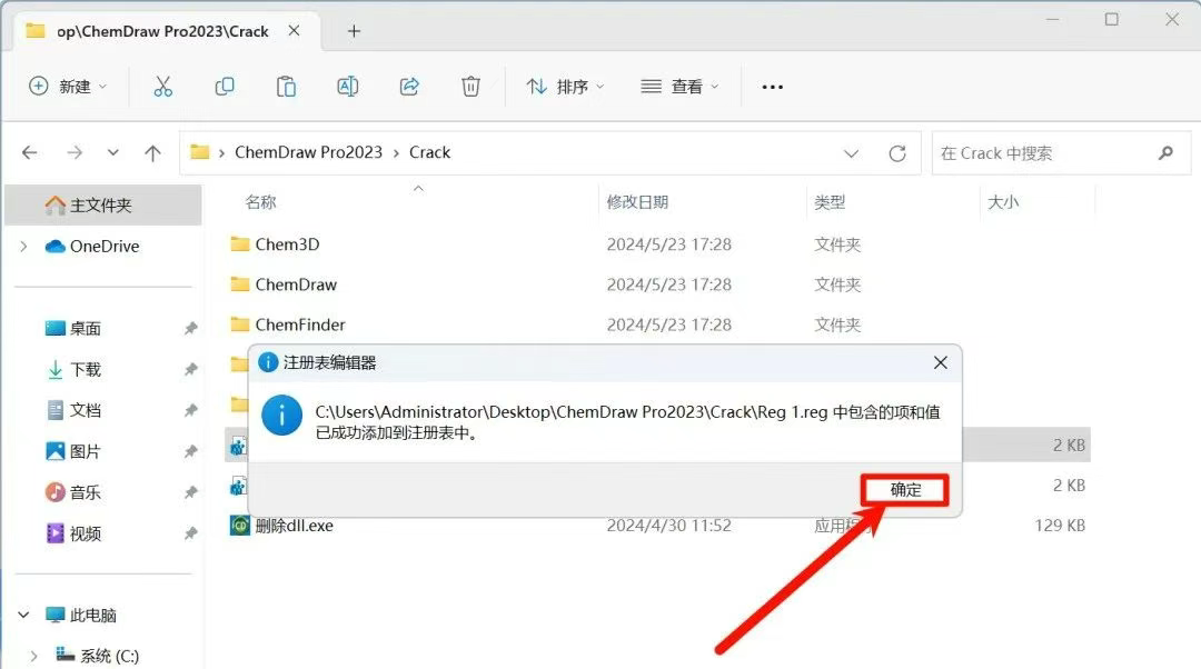 17.分别双击运行“Reg 1.reg”和“Reg.reg”注册表文件,注意这三个文件都需要执行一次,最后执行删除dll.exe,如果没有删除dll.exe 说明被杀毒工具屏蔽,需要关闭杀毒工具后,重新解压,再执行